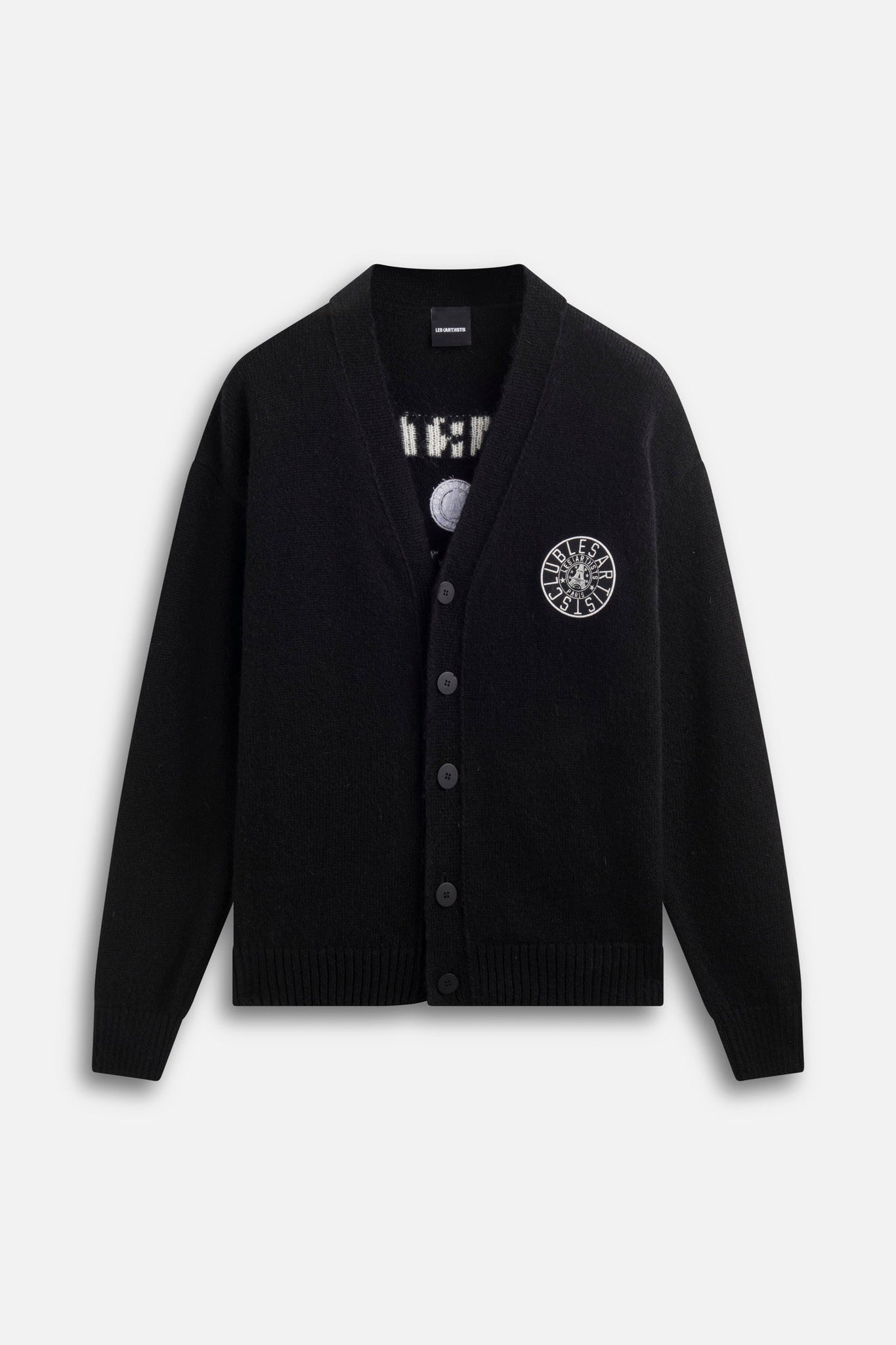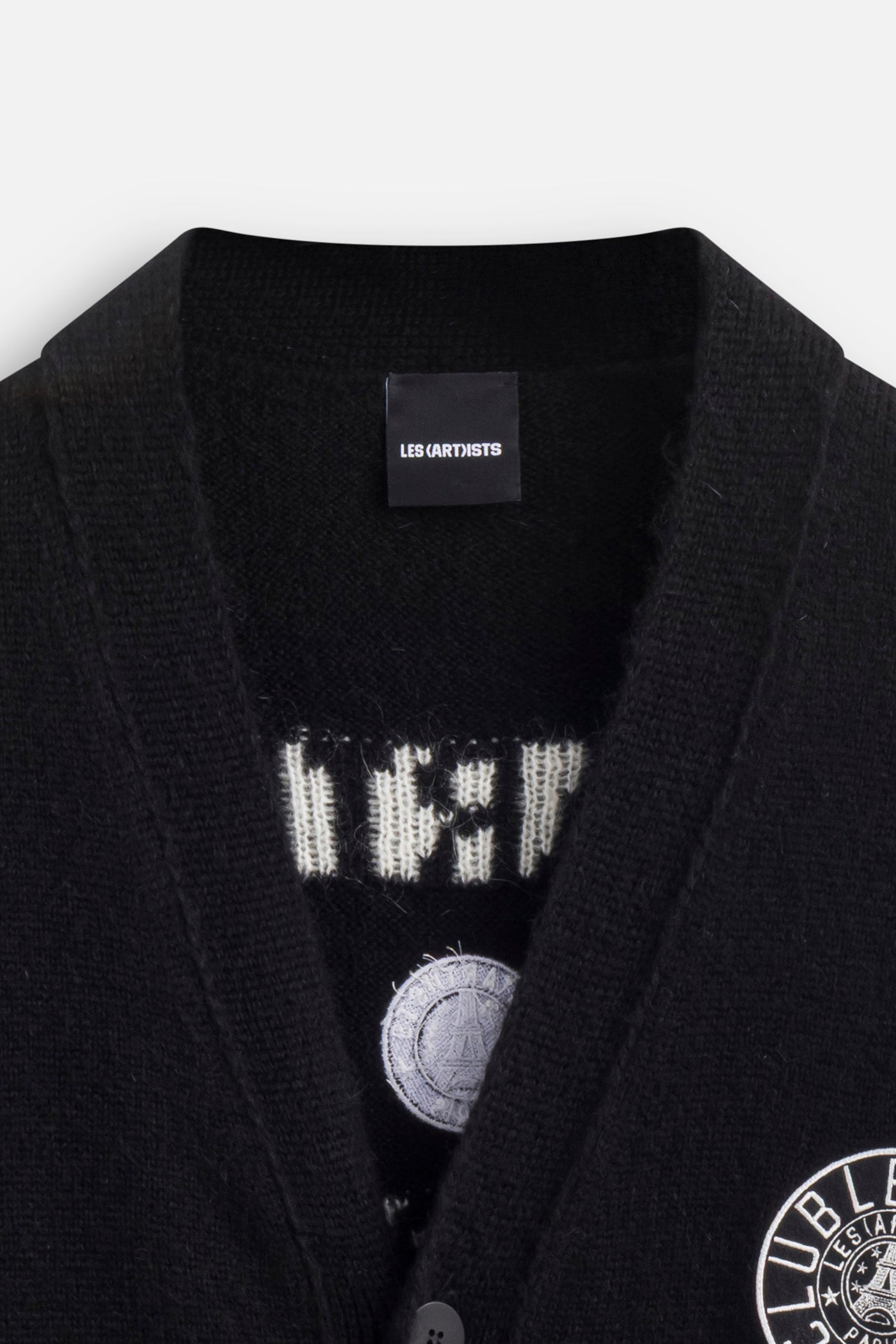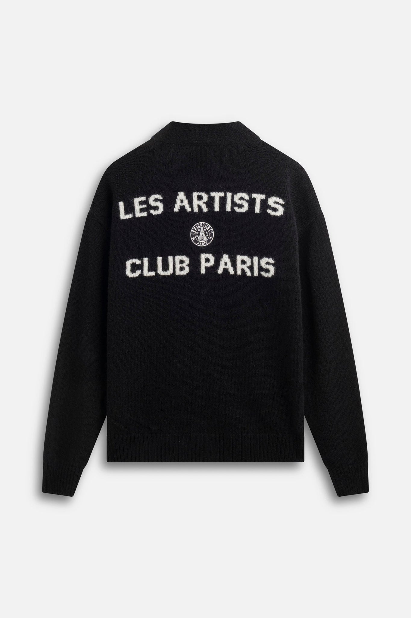 The LES (ART)ISTS Cardigan Knitwear Club Paris blends classic knitwear with modern identity. Designed in black jacquard knit, it features Club Paris lettering on the front and back for a refined yet casual look. Its warm and soft blend ensures both comfort and durability.
