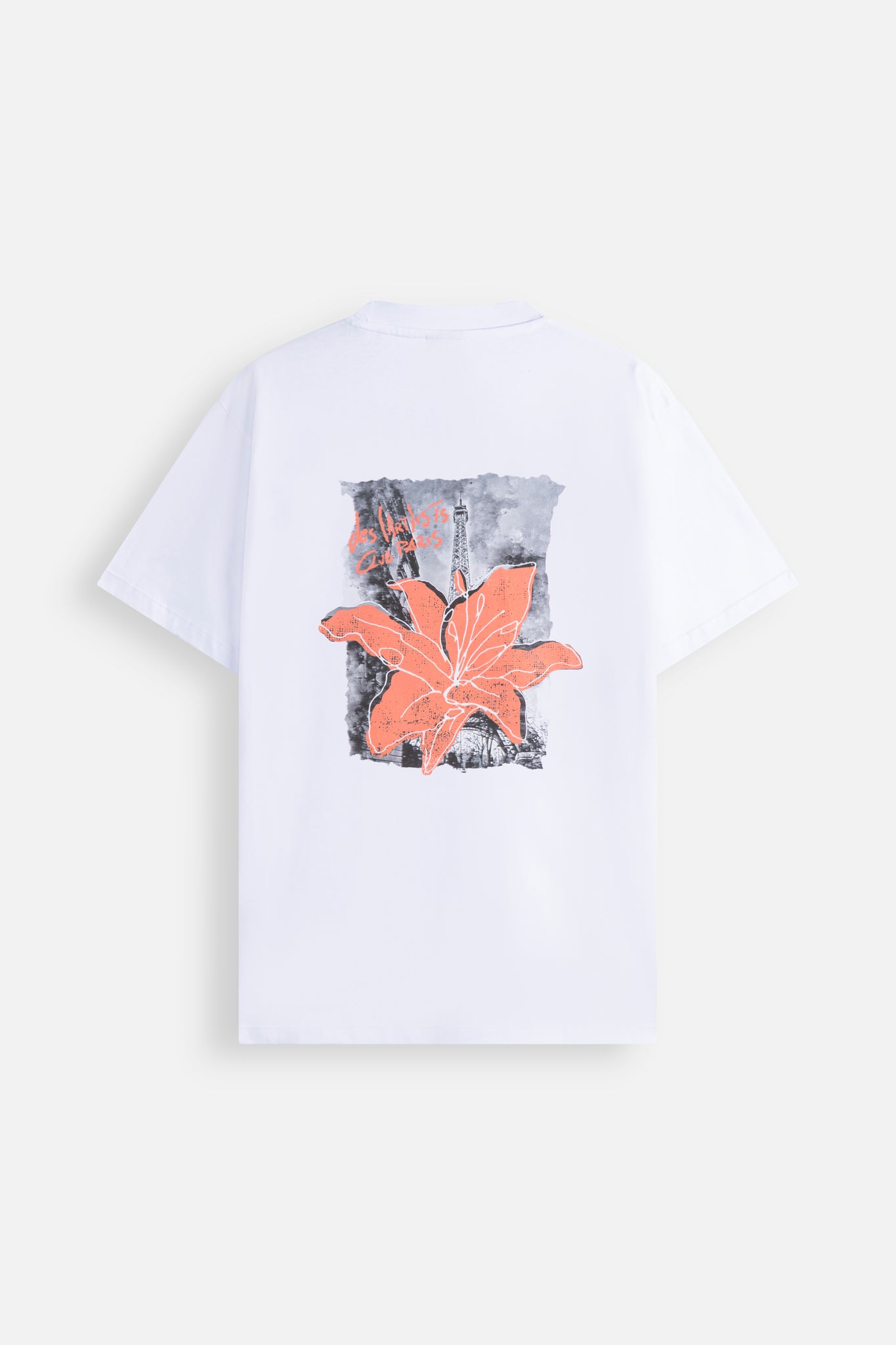 The T-shirt Flowers combines artistic expression with contemporary streetwear aesthetics. Featuring a bold floral graphic on the back, this piece contrasts organic form with a structured silhouette, creating a refined yet expressive visual statement.