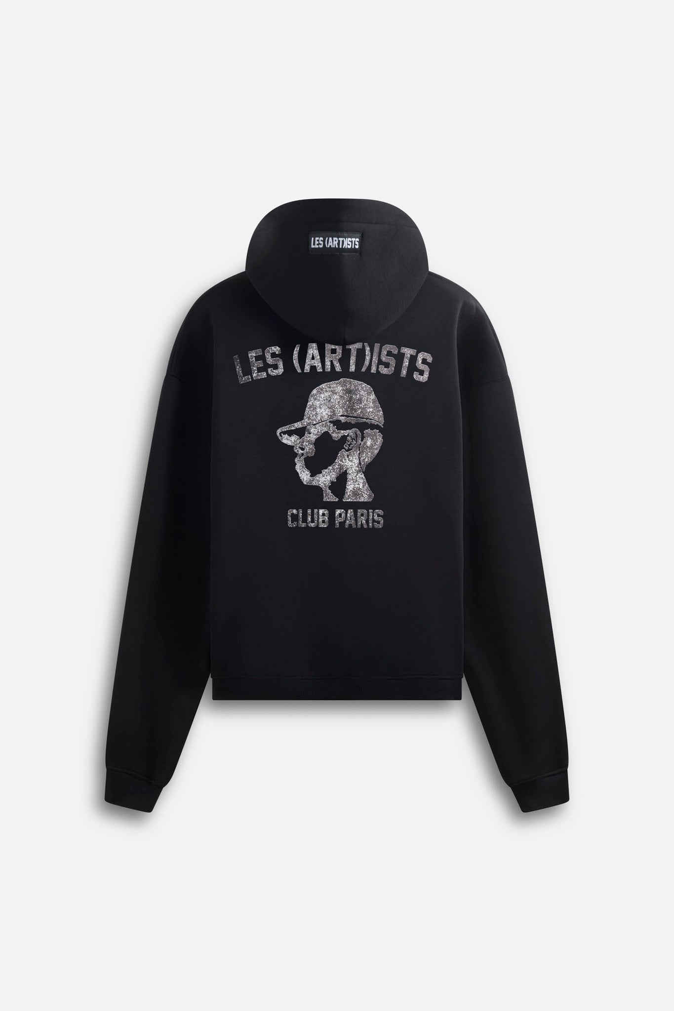 The LES (ART)ISTS Hoodie Club Paris Black is a bold statement piece that blends streetwear aesthetics with comfort. Made from 100% premium cotton, it offers a soft and durable feel, perfect for everyday wear. The front features a minimal “Club Paris” print, while the back is highlighted by a striking graphic print of a profile portrait framed by the LES (ART)ISTS and Club Paris lettering. With its relaxed fit, kangaroo pocket, and adjustable hood, this hoodie is an essential for modern urban style.