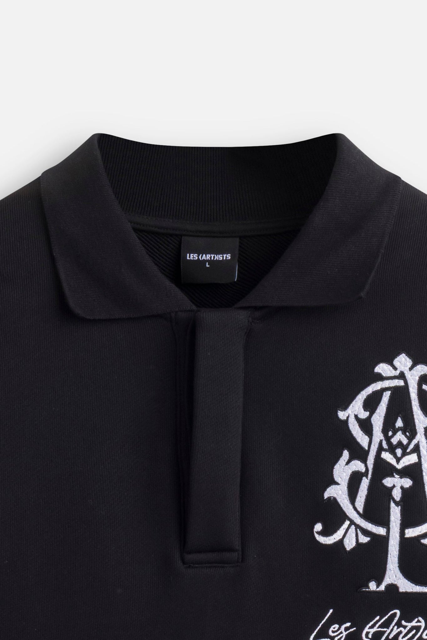The LES (ART)ISTS Long Sleeves Polo Sweatshirt Monogram Black blends the elegance of a polo with the casual spirit of streetwear. Made from 100% premium cotton, it features a large monogram logo on the back and a smaller version with signature on the chest. The long sleeves and polo collar with buttons make it a refined yet versatile piece.