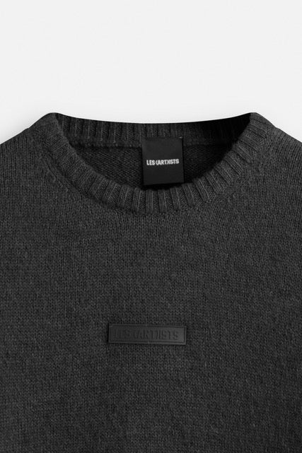 The LES (ART)ISTS Knitwear Label Essential Black is a soft and warm statement piece designed for comfort and refined minimalism. Its rich, textured fabric and subtle black color create a contemporary silhouette, while the tonal logo patch on the chest adds a discreet yet distinctive identity. Ideal for layering in cooler seasons.