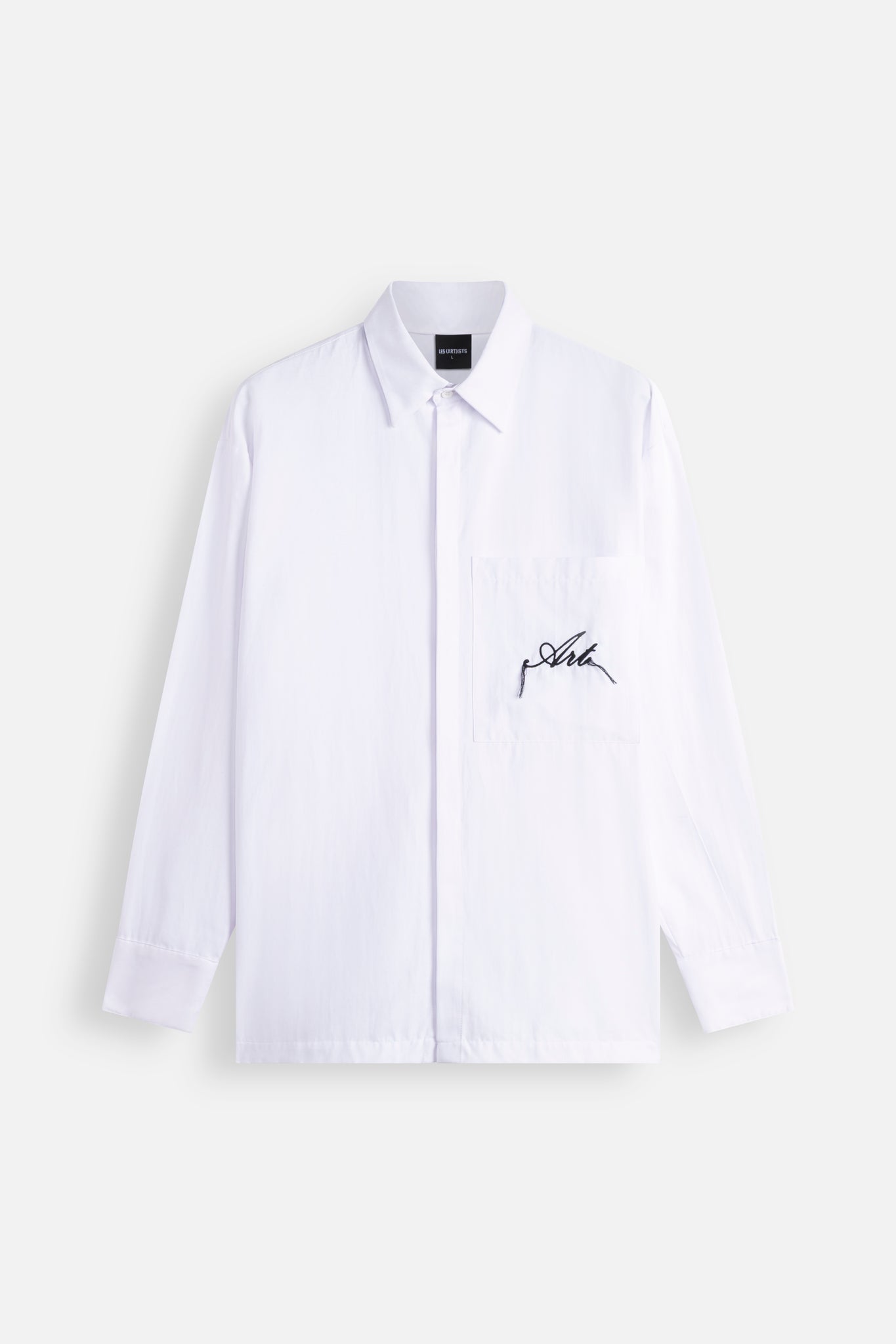The Long Sleeve Shirt Embroidery Art offers a contemporary take on classic tailoring, blending clean design with subtle artistic detail. Defined by a relaxed yet structured silhouette, this piece features a refined embroidered graphic on the chest pocket, adding a distinctive signature touch.